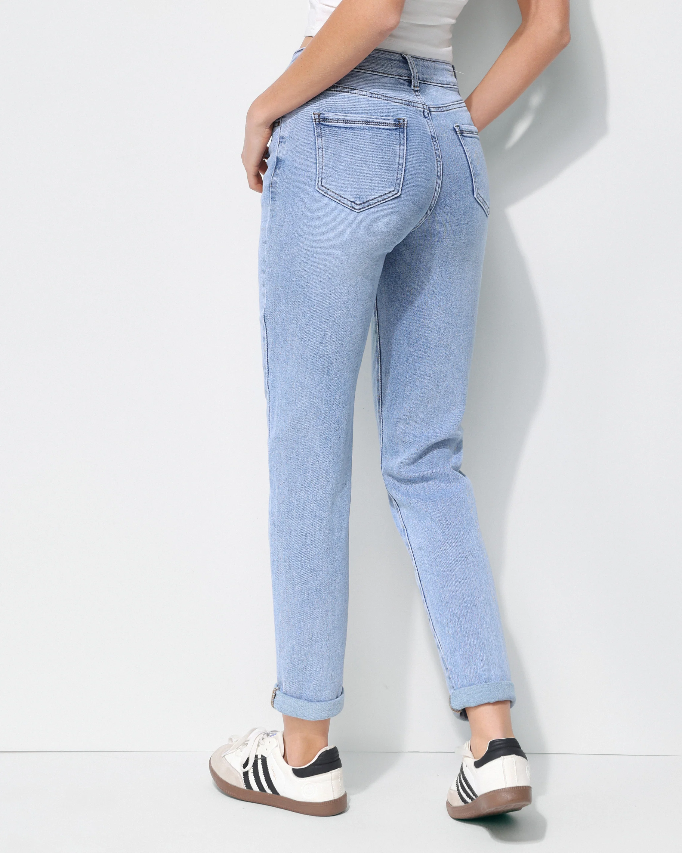 Deze Hello Miss mom fit jeans heeft een frisse lichtblauwe denim wassing en een relaxte pasvorm. Het model zit mooi aangesloten bij de taille en loopt iets losser langs het been. Een trendy mom jeans die comfortabel zit en makkelijk te combineren is met een top, blouse of trui.