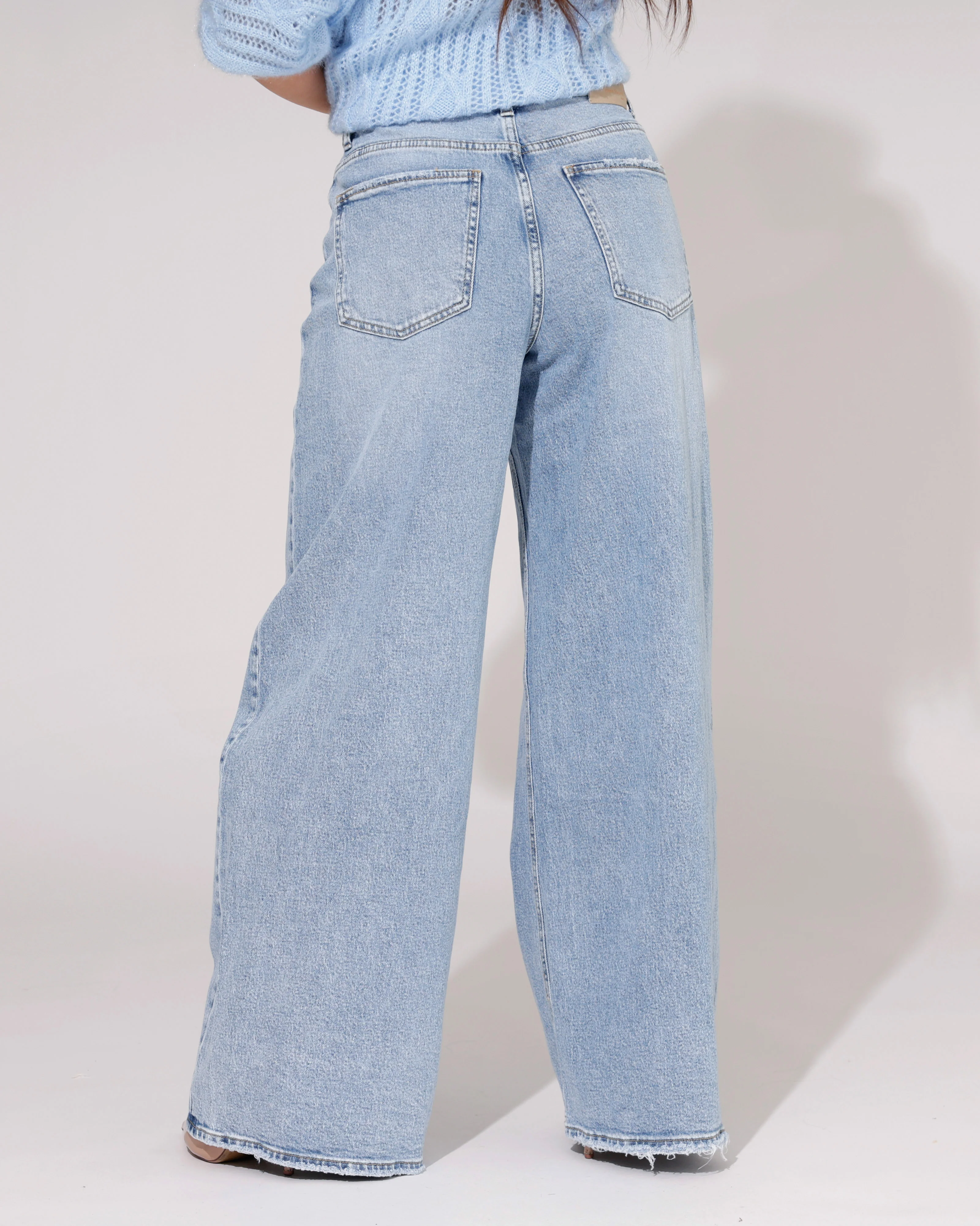 Deze Queen Hearts wide leg baggy jeans in lichtblauw heeft een frisse denim kleur en een comfortabele, losse pasvorm. De wijde pijpen geven de jeans een trendy en relaxte look. Een fijne wide leg jeans dames die makkelijk te combineren is voor een casual en moderne outfit.